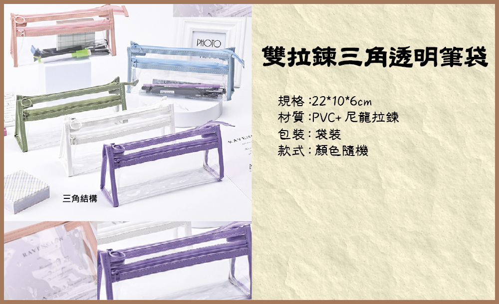 雙拉鍊三角透明筆袋