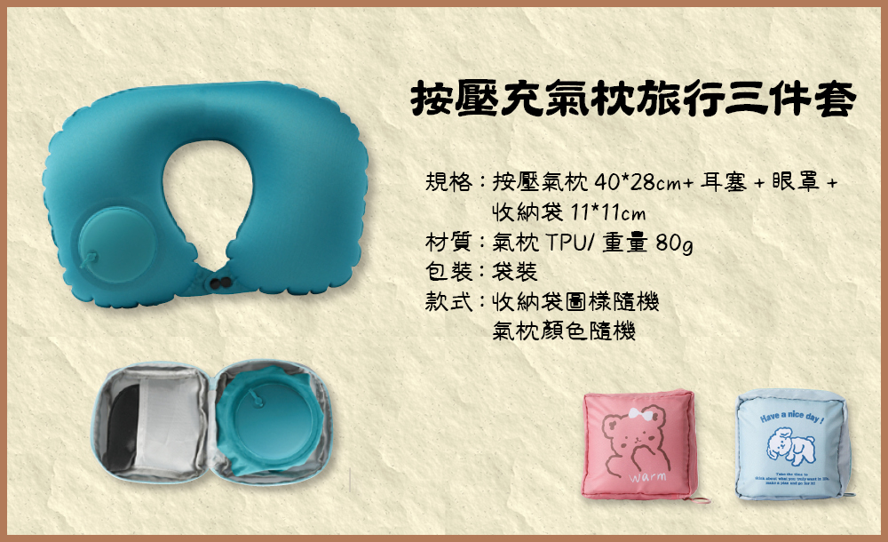 規格:按壓氣枕4028cm+耳塞+眼罩+收納袋1111cm