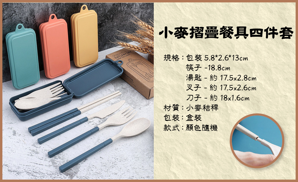 小麥摺疊餐具四件套